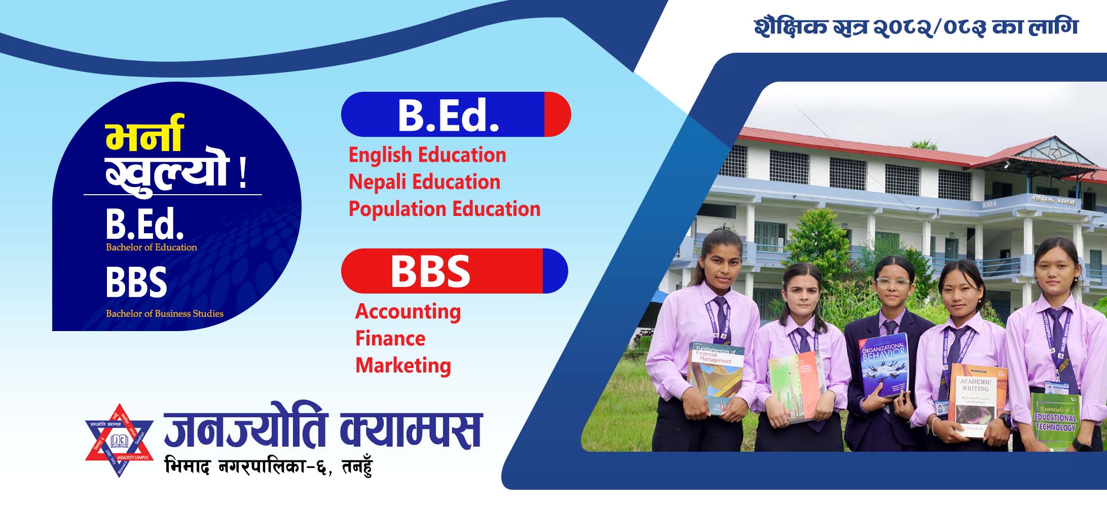 Higher education in Nepal is expanding rapidly in response to the ever increasing aspiration of people for quality higher education. Higher education institutions are being added and students’ enrollment in higher education institutions is increasing every year. With the increasing number of graduates concerns with quality and relevance of higher education programs and the delivering institutions are also growing particularly in view of employability of the graduates and/or their capacity for self-initiatives/entrepreneurship to generate employment. A substantive number of students are going abroad for higher education seeking better quality and relevance. Janajyoti Campus (JC) was established with the active participation of local community including academician, politicians, intellectuals, social workers, journalists, parents and students of this local community.
